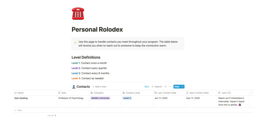 - A personal rolodex so that you can build and maintain your network